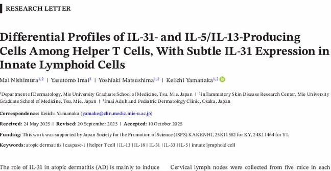 アトピーの痒みに関するサイトカインに関して、より獲得免疫の関与を示唆する内容になっています。