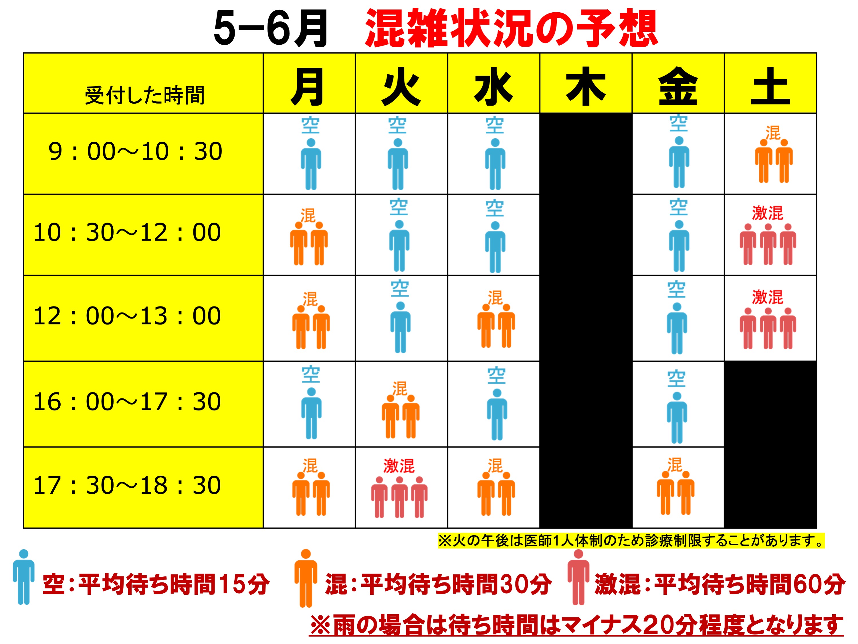 それに伴い混雑予想もアップデートいたしましたので来院のご参考にご利用ください